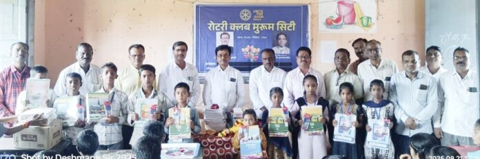 येथील रोटरी क्लब मुरूम सिटीचे सदस्य तथा उद्योजक रोटरीयन आप्पासाहेब पाटील यांच्या वाढदिवसाचे औचित्य साधून मुरूम येथील जिल्हा परिषद प्रशालेतील गुणवंत, होतकरू विद्यार्थ्यांसाठी शालेय साहित्य व विद्यार्थ्यांना खाऊचे वाटप गुरुवारी (दि.२१) रोजी मान्यवरांच्या हस्ते करण्यात आले. वाढदिवस अभिष्टचिंतन कार्यक्रमाच्या अध्यक्षस्थानी प्रशालेचे मुख्याध्यापक विजयकुमार देशमाने होते. यावेळी रोटरीचे अध्यक्ष प्रा. डॉ. आप्पासाहेब सूर्यवंशी, कंटेकुरचे सरपंच गोविंद पाटील, प्रा. डॉ. महेश मोटे, प्रा. डॉ. सुधीर पंचगले, वस्तीगृह अधीक्षक महेंद्र कांबळे आदित्य प्रमुख उपस्थिती होती.
