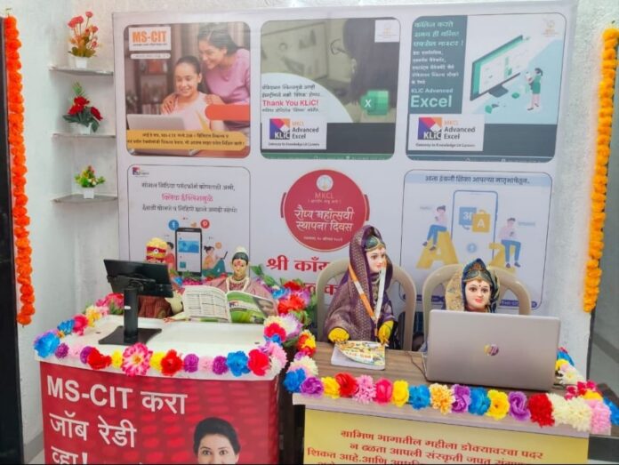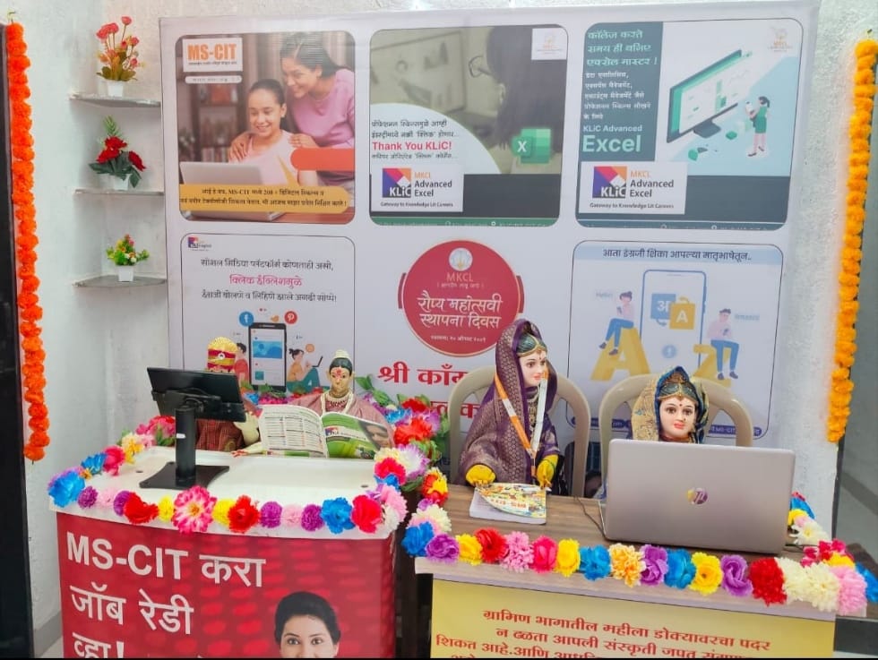 जळकोट येथील छत्रपती शिवाजी महाराज चौकातील श्री कॉम्प्युटर्सने यावर्षीच्या गौरीनिमित्त आत्मनिर्भर्तेकडे भारत झेप घेत असताना, संगणकाच्या महत्त्वावर देखावा सादर केला आहे. महाराष्ट्र ज्ञान महामंडळ संचलित श्री कॉम्प्युटर्स हे वेगवेगळ्या योजने संदर्भात विद्यार्थ्यांना व महिला सतत प्रशिक्षण व मार्गदर्शन करत असते. या संगणक केंद्रातून हजारो विद्यार्थ्यांना आत्तापर्यंत प्रशिक्षण देण्यात आले आहे. श्री कॉम्प्युटर्सच संचालक श्री. लक्ष्मीकांत पाटील यांनी कल्पकतेतून आपल्या संगणक केंद्रात भारतीय महिला आपली संस्कृती जपत संगणकाचे धडे घेत आहेत. डोक्यावरचा पदर घेऊन या महिला संगणकवर क्लिक करत आहेत. भारतीय संस्कृतीचे जतन करत महिला आत्मनिर्भर बनत असल्याचे चित्र तर एका बाजूला नवी पिढी नव्या भविष्यासाठी एआय तंत्रज्ञान शिकत आहेत. भविष्यात येऊ घातलेल्या एआय तंत्रज्ञान भावी पिढीसाठी फारच उपयुक्त आहे. हे तंत्रज्ञान नव्या पिढीपर्यंत पोहोचावे. महिलांना संगणकामध्ये आत्मनिर्भर करून नव्या जगाची ओळख व्हावी. यासाठीच हा देखावा सादर करण्यात आला आहे. या देखाव्याचे सर्वत्र केले जात आहे. या देखाव्याच्या माध्यमातून महिलांची प्रगती व्हावी. त्यांच्यापर्यंत योजनेची माहिती जावी. नव्या पिढीला एआय तंत्रज्ञान कळावे. या तंत्रज्ञानाच्या माध्यमातून भविष्याचे येऊ घातलेल्या संधी कशा आहेत. याबाबत जनजागृती करण्यासाठी देखावा सादर केल्याचे श्री कॉम्प्युटर संचालक संचालक श्री. लक्ष्मीकांत पाटील यांनी सांगितले. या कामी श्री कॉम्प्युटर सेंटरच्या सहाय्यक संचालिका सौ. ज्योती पाटील व महाराष्ट्र जीवनोन्नती अभियान(उमेद) च्या चिकुंद्रा येथील केशर जाधवर यांनी सहकार्य केल्यामुळे हा देखावा सादर केल्याचे पाटील यांनी सांगितले.
