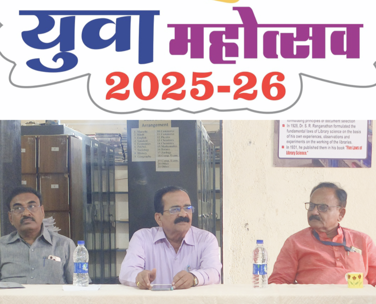 धाराशिव जिल्ह्यातील महाविद्यालयीन युवकांना प्रतिष्ठित नागरिक बंधू-भगिनींना महाविद्यालयाचे प्राचार्य डॉ. उमाकांत चनशेट्टी व डॉ अंकुश कदम यांनी दोन दिवस संपन्न होणाऱ्या युवा महोत्सवास उपस्थित राहण्याचे आवाहन पत्रकार परिषदेमध्ये केले. यावेळी उपप्राचार्य डॉक्टर मल्लिनाथ लंगडे,आयोजक डॉ विवेकानंद वाहुळे, सांस्कृतिक विभाग प्रमुख डॉ मल्लिनाथ बिराजदार यांची उपस्थिती होती.