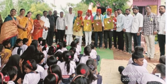 संभाजीनगर शाळेत पुष्प वर्षाव करत विद्यार्थ्यांनी दिला शिक्षकांना निरोप व नव्याने रुजू शिक्षकांचे स्वागत